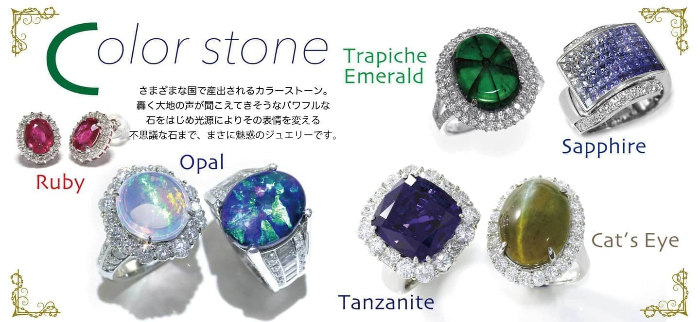 紫紺のサファイヤ、深海色のエメラルドなど様々な色を放つカラーストーンはご自分の