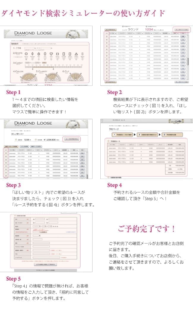 圧倒的に使いやすく直感的な操作でご希望のダイヤモンドルースを簡単に検索できます。神戸七宝がもつ約2000ピース以上のダイヤモンドの中から貴女に合った世界でたったひとつだけのルースを見つけることができます。
